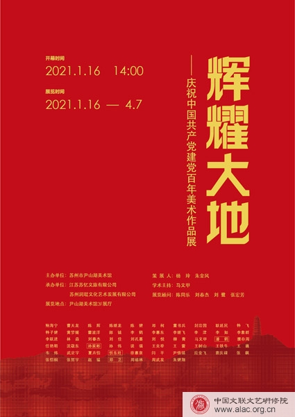 展览题目为“辉耀大地”,即人民就是大地的太阳,党带领人民的光辉奋斗历程照亮了中国与东方大地。众多可歌可泣的故事汇成史诗,美术作品也深刻地表现了这一主题。展览作品汇集中国画、油画、雕塑、版画等多种艺术形式,涵盖了老中青三代艺术家的七十二件作品,呈现了我国从建党立业至当代幸福美好生活的变迁,以及对抗疫英雄的歌颂,串联起了中国共产党领导中国人民“站起来、富起来、强起来”的光辉历程。