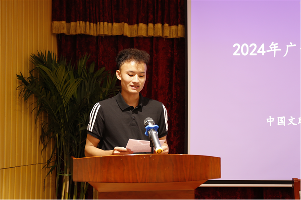新文艺群体蒋成和广西艺术学院音乐学院声乐系马兴智作为学员代表发言。蒋成表示,通过第一年培训,他深刻感受到了文艺的力量和魅力,并且对文艺创作有了更深刻的理解和感悟。马兴智表示,此次培训班课程设置针对性和专业性很强,同时安排了丰富的实践活动。希望通过此次培训,更加坚定文化自信,更好地完成在新时代新征程上文艺工作的使命和担当。
