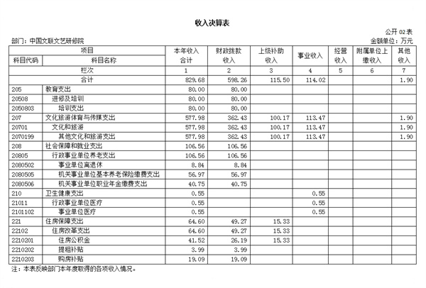 二、收入决算表