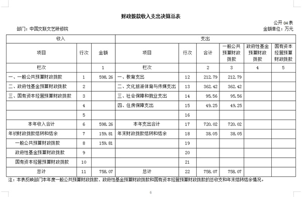 四、财政拨款收入支出决算总表