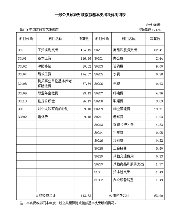六、一般公共预算财政拨款基本支出决算表
