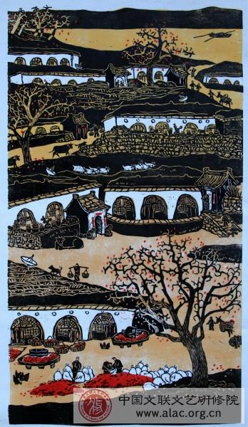 刘宏祥的版画紧紧把握住时代的脉搏,展示社会发展的大势和强势。他的作品关注人们习以为常的生活,有农家小院,黄河大桥,城市风光,民歌民俗等,具有鲜活的生命力。刘宏祥不拘泥刀法,胸有成竹,依刀向木,放刀直干,尽情地将自己对生活的感受,对黄土地的深情,用刻刀展现出来。