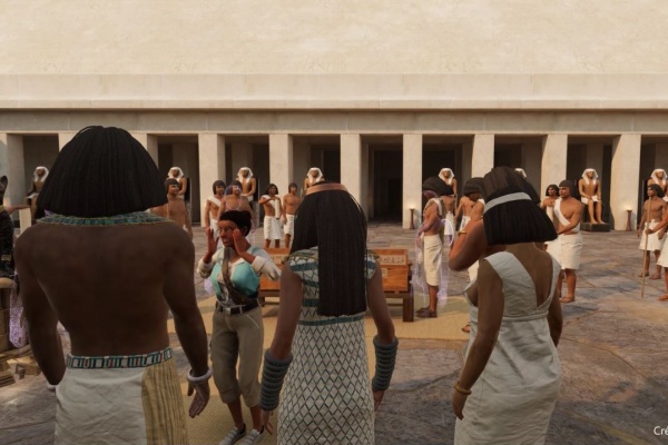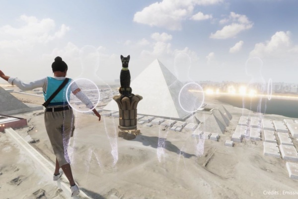 传统展览,无论是文物、艺术品还是光影,观众始终是以第三人称的视角来看展,观众和展品始终有着一定的距离。而与传统展览不同的是,当观众带上头显设备的那一刻,已然身在展览作品之中,这种由第三人称视角到第一人称视角带来的变化,就是身临其境的沉浸感,这种感受用文字、声音、图像、视频都无法准确传达出来。当游客与同伴共同进入空间计算营造出的古埃及文明中,传统VR带给人的孤独与不适也同时不复存在了,观众的探索欲与社交欲被激发,将与同伴一起开启一场令人兴奋的旅程。