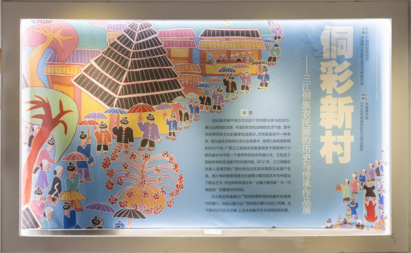 这次展览源自“2023年度文化和旅游部青年科研人才扶持计划项目”的研究成果,通过36件广西民族博物馆馆藏作品、侗族画师的口述采访资料、数字艺术实验作品等,向观众展示出广西少数民族乡镇“人与自然和谐共处”“个体与社会有爱协作”“不同民族之间交往交融”的积极面貌。