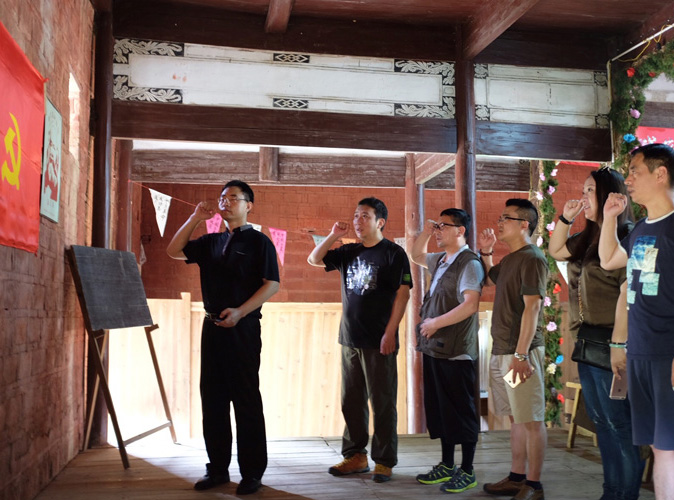 27/07/20167月1日,值此党的第95个生日到来之际,亿万先生mr01官网“永远的长征”江西创作组的艺术家在亿万先生mr01官网副院长冀彦伟的带领下,来到江西叶坪革命旧址为革命烈士敬献花篮,并在第一次全国苏维埃代表大会会址的党旗前重温入党誓词,激励创作组党员校友们充分发挥先锋模范作用,积极投入到党的文艺事业和采风创作中去。