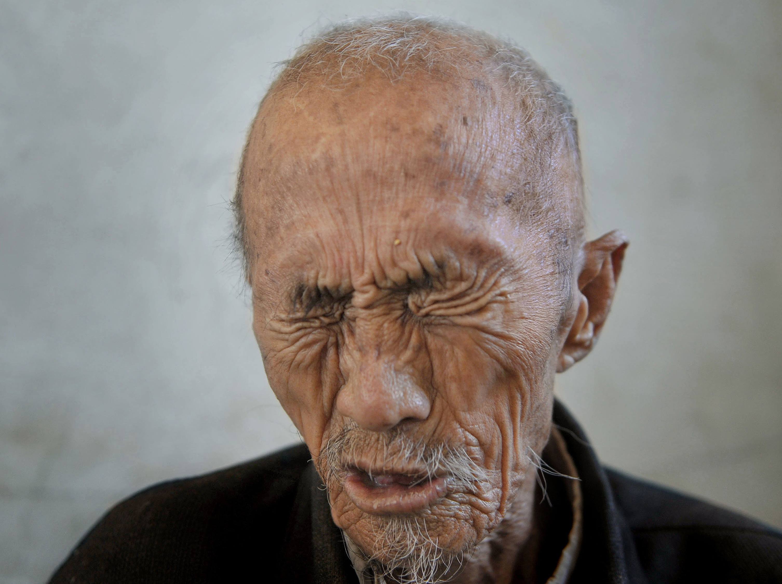 李松合 88岁,山东省高密市人,1944年至1945年日本明治矿业昭和矿业所劳工,晚年瘫痪在床。(2010年10月2日摄)