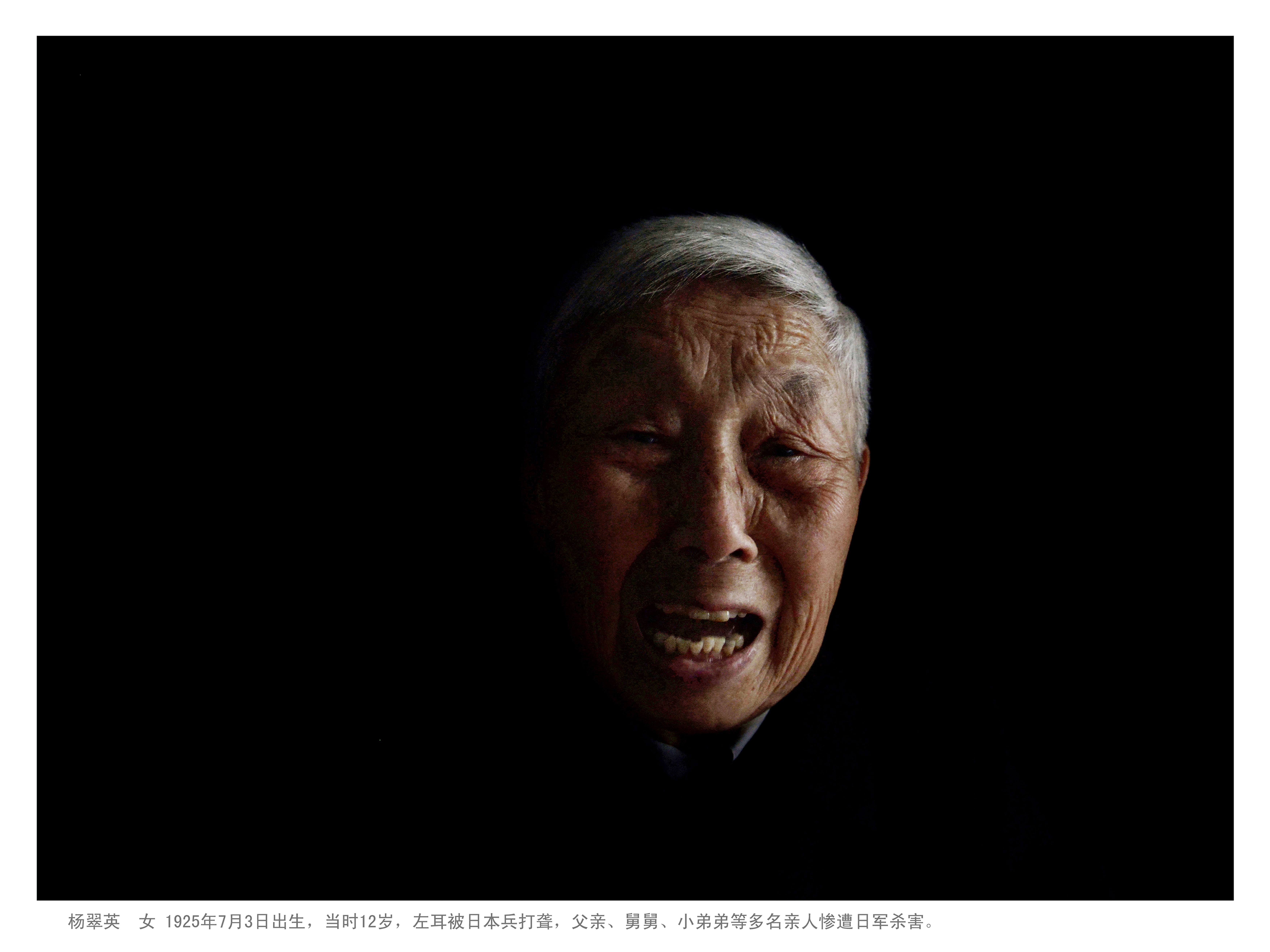 杨翠英 女 1925年7月3日出生,当时12岁,原住南京许府巷33-3号,父亲、舅舅、小弟弟等多名亲人惨遭日军杀害,她遭到日本兵暴打致左耳失聪。(2014年5月2日摄于南京)