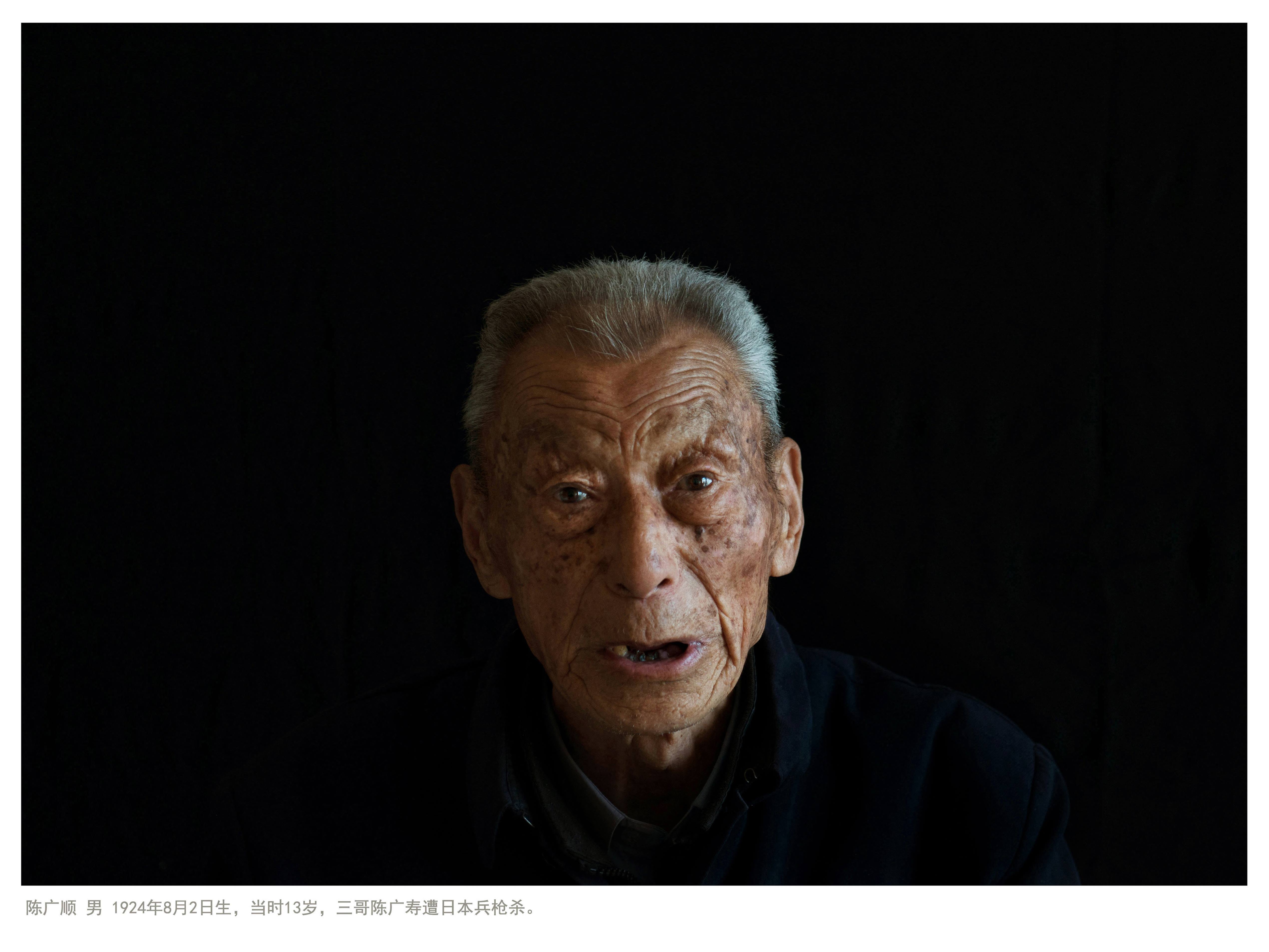 陈广顺 男 1924年8月2日出生,当时13岁,原住南京汤山西岗头村,当时17岁的三哥陈广寿惨遭日军杀害。(2015年5月12日摄于南京)