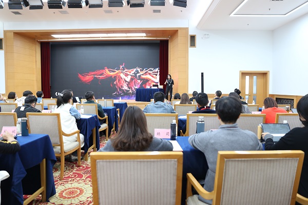 10月22日上午,北京舞蹈学院教授、硕士研究生导师、院学术委员会委员田露以《舞蹈审美》为主题为学员作专题讲座。田露首先向学员讲解了民族民间舞蹈的多样化表达、舞蹈气与力的运用及协调关系,紧接着围绕舞蹈言说及风格进行深入浅出的讲解。田露指出,一切艺术的手段都是为了言说,言说的作用是为了表达,表达思想和情感,舞蹈艺术也是一样,舞蹈艺术是创造者冥想中的梦境世界,它超越自然、超越现实,是幻影世界的现实再现。田露还现场播放了她编导的《长调》《花儿为什么这样红》《老雁》《移山》等优秀舞蹈作品,引导学员深入理解作品的内涵。