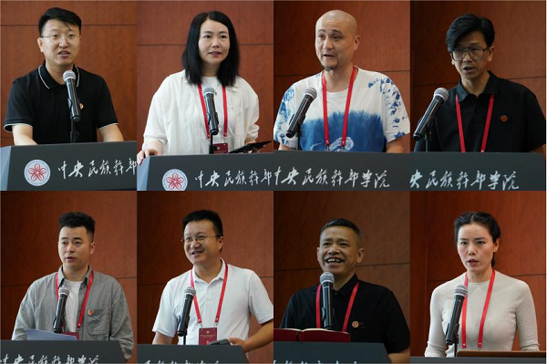 结业式上,学员代表徐淑凯、丁文波、段阿林、郑文平、李芳、李小岗、韦毛华、李馨曌先后分享研修感悟。他们表示,为期三周的学习之旅紧张而充实,各领域名家大师的讲座、精彩纷呈的学员讲坛、主题鲜明的现场教学等研修课程极大地提升了政治站位、拓宽了艺术视野、提升了专业素养,研修结束后将秉承“博文求是、弘德修艺”院训,投身火热生活,精益求精创作,勇攀文艺高峰。